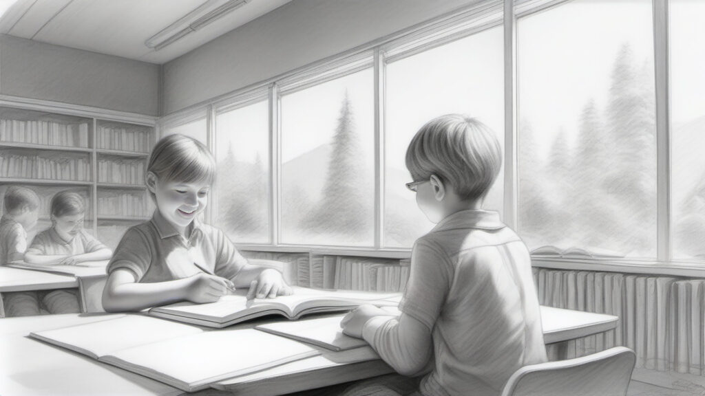 Wir sind eine kleine Schule mit einem Kindergarten und altersgemischten Klassen.
